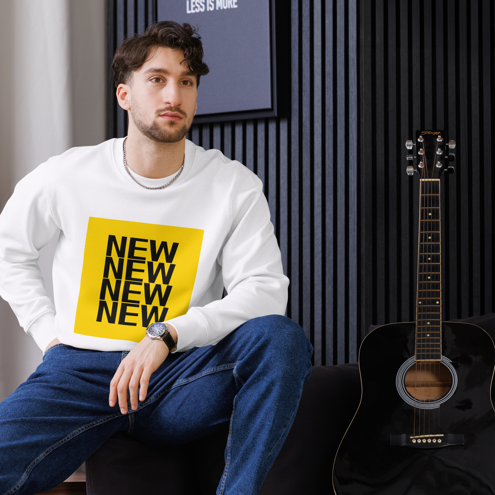 Elevate your style with this unisex eco sweatshirt. The shirt has a chic, crisp look and will go great with both casual and more dressed up outfits. Made of organic cotton, this sweatshirt is durable, comfy, and extra soft.