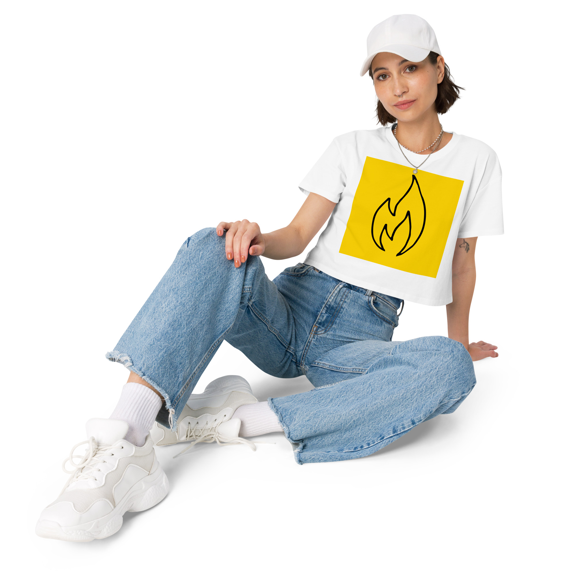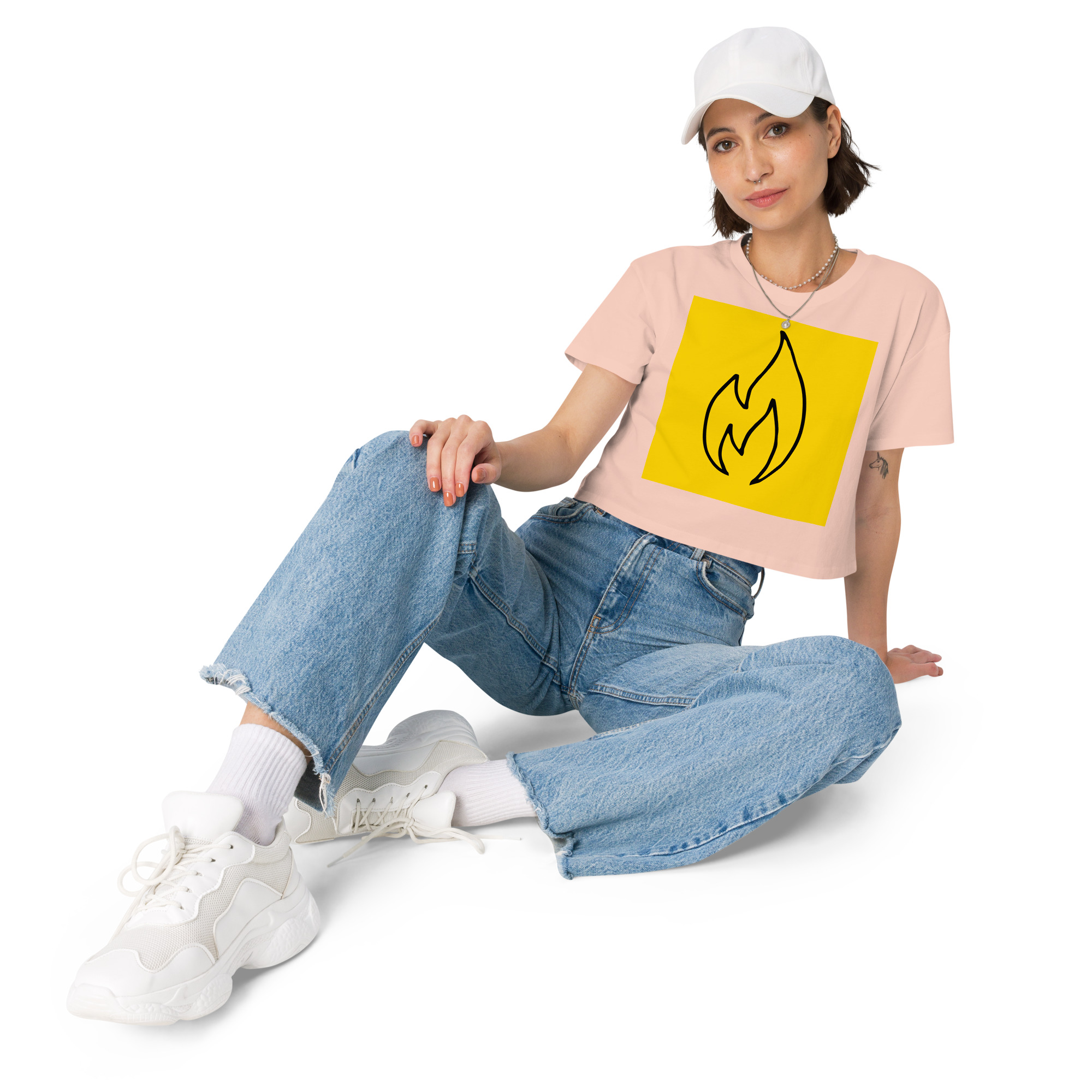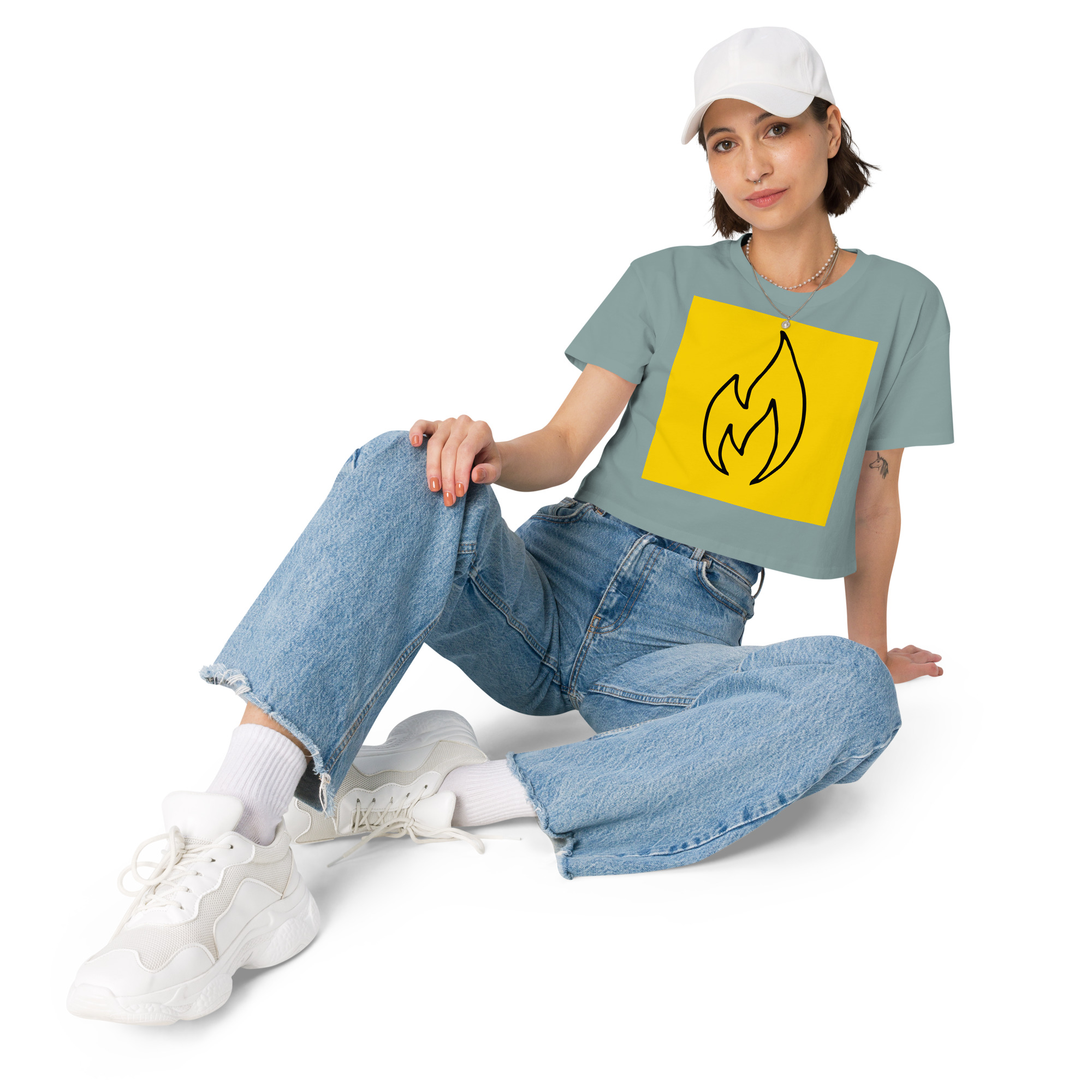 This crop top is made of 100% combed cotton, which makes the shirt extremely soft and more durable than regular cotton shirts. The relaxed fit and dropped shoulders ensure comfortable wear, while the cropped length makes it perfect for spring and summer.